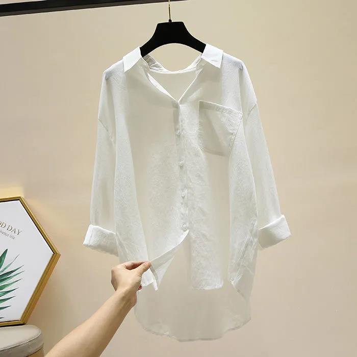 Рубашка с длинными рукавами, женская весенне-летняя свободная повседневная рубашка с одним карманом, топ XXXXL белый
