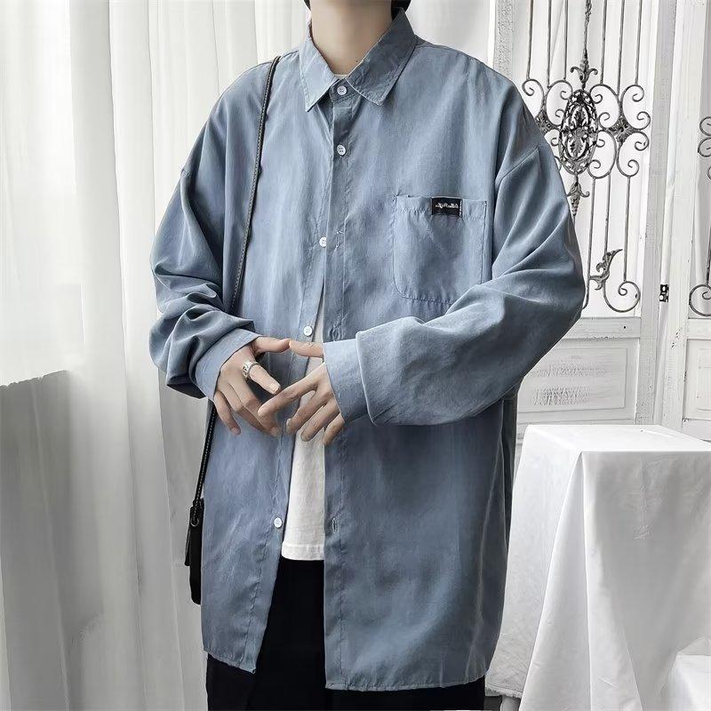 Рубашка с длинным рукавом с напечатанными буквами в японском стиле в стиле Гонконга, свободная рубашка для мальчиков, летнее модное универсальное повседневное пальто 3XL синий