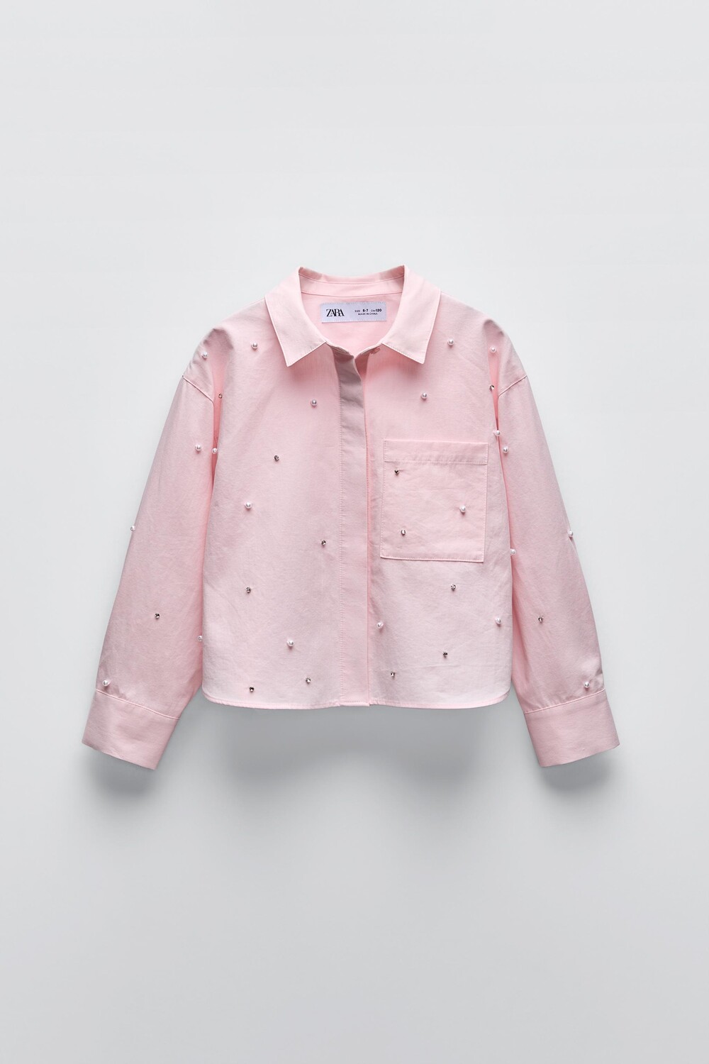 Рубашка с жемчугом и стразами ZARA, темно-розовый