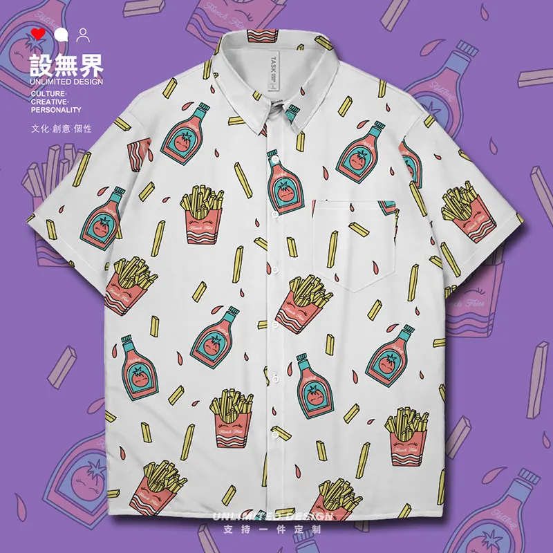 Рубашка с коротким рукавом для мужчин, топ в стиле хип-хоп, одежда с коротким рукавом для пиццы, фэт-дома, счастливой еды, пиццы, картошки фри, ...