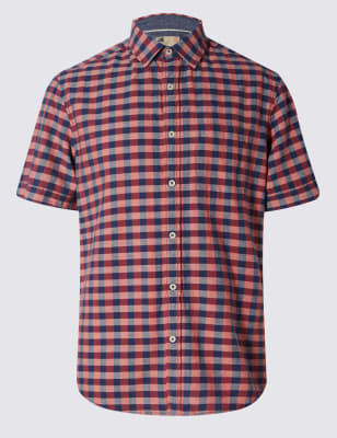 Рубашка с коротким рукавом из чистого хлопка в блочную клетку
