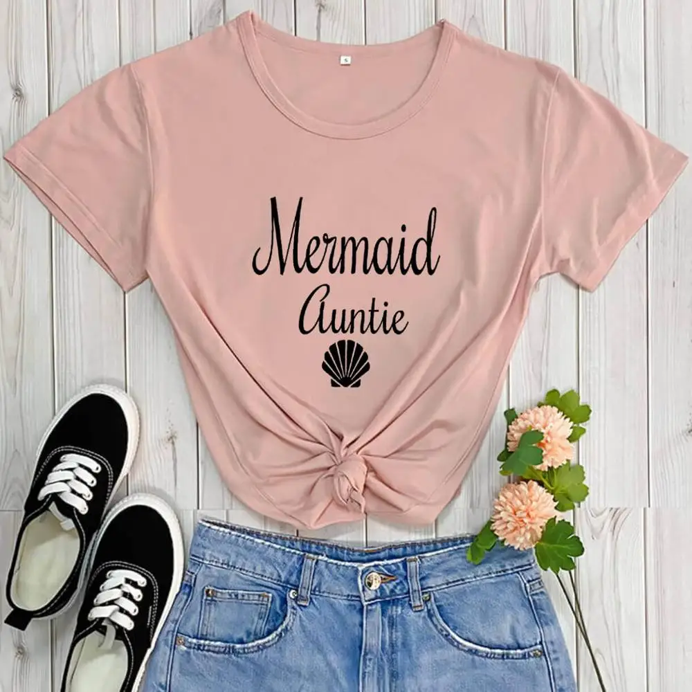 Рубашка с темой русалки, Новое поступление, летняя повседневная забавная футболка из 100% хлопка, наряд русалки для вечеринки, рубашки русалки для вечеривечерние, Подарок Для Тети
