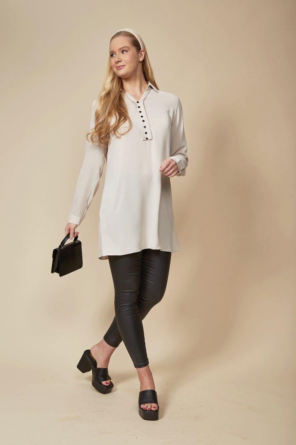 Рубашка-туника оверсайз с пуговицами HOXTON GAL, бежевый