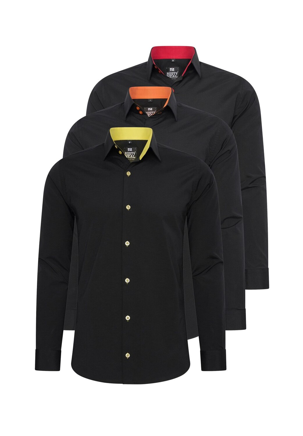 Рубашка (3 шт) с длинными рукавами, приталенного кроя RUSTY NEAL, черный