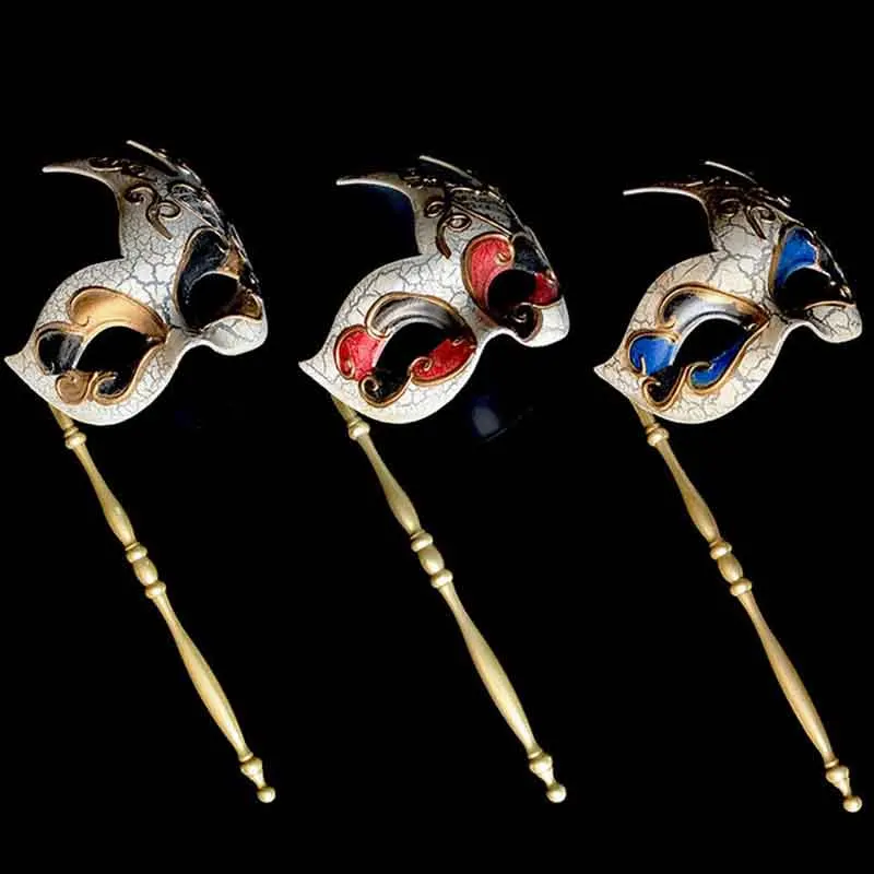 Handheld Masquerade Masks Women Men Vintage Fashion All-match Party Bar Cosplay Halloween Easter Festival Prom Black Blue White