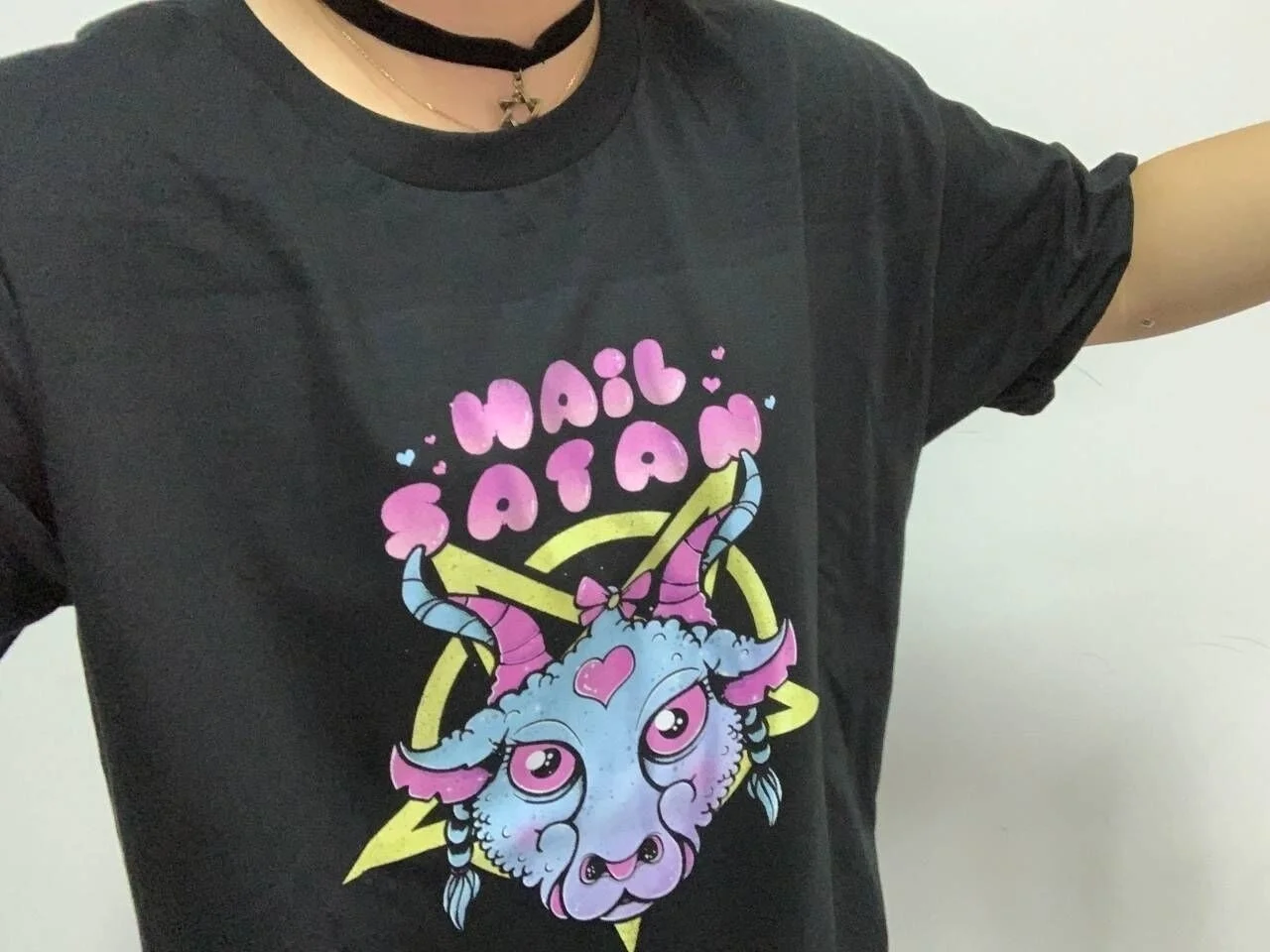 Рубашка Fashionshow-JF, 1 шт., пастель с надписью «Hail Satan», эстетическая одежда, футболка с рисунком козы, футболка с пентаграммой, Готическая футбол...