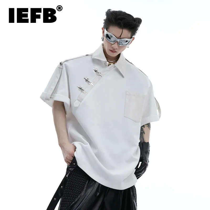Рубашка IEFB 24E1530 мужская с металлической накладкой на плечо, модный топ из искусственной кожи, свободная рубашка с короткими рукавами, однотонная, 2024