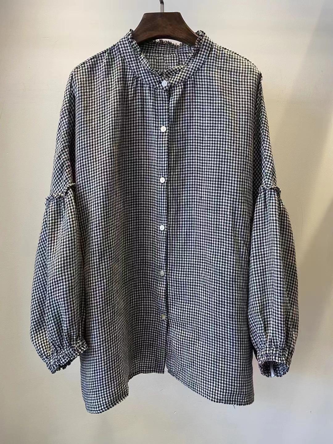 Рубашка Johnature Japanese Fungus с воротником-стойкой, женская, осенняя, ретро, свободная, универсальная, с рукавом реглан One Size чёрный