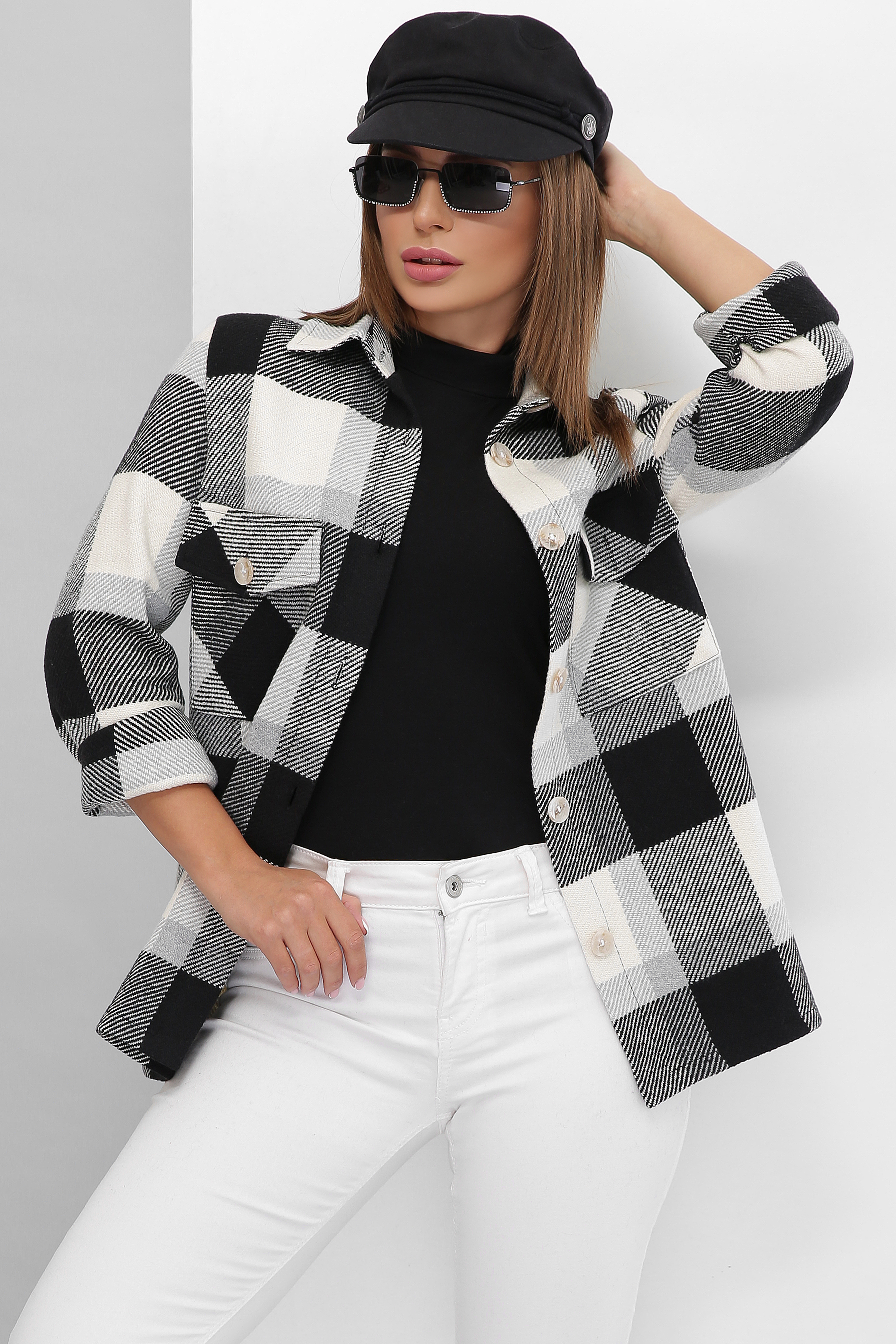 Женская рубашка. Состав - кашемир/пальтовая ткань (50% шерсть, 50% акрил). Растяжимость низкая. Трендовая теплая рубашка из турецкого кашемира в крупную клетку, изделие дополнено накладными карманами с клапаном, застегивается на пуговицы как по длине так и на карманах, без подкладки. Несомненно это Хит продаж этого сезона. Успейте приобрести в нашем магазине по приятной цене.