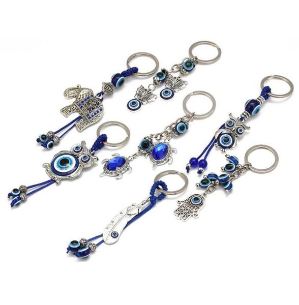 whole fashion animal butterfly evil eyes keychain glass key chain glass blue eye pendant ornament keychains3357907, Silver