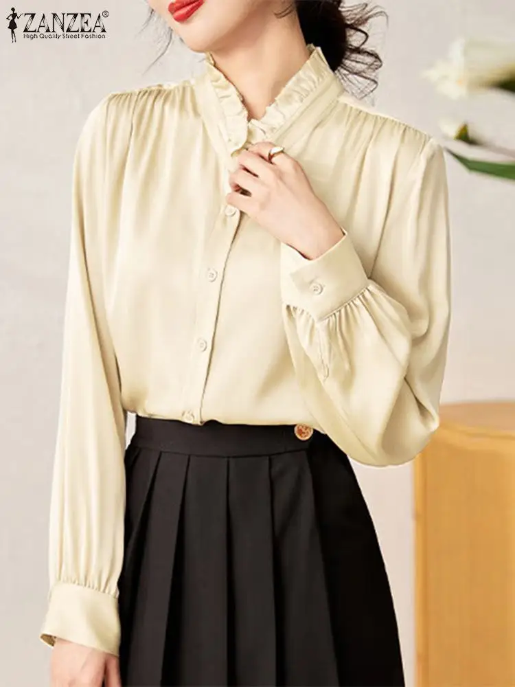 Рубашка ZANZEA Женская плиссированная с воротником-стойкой, на пуговицах, осень 2023
