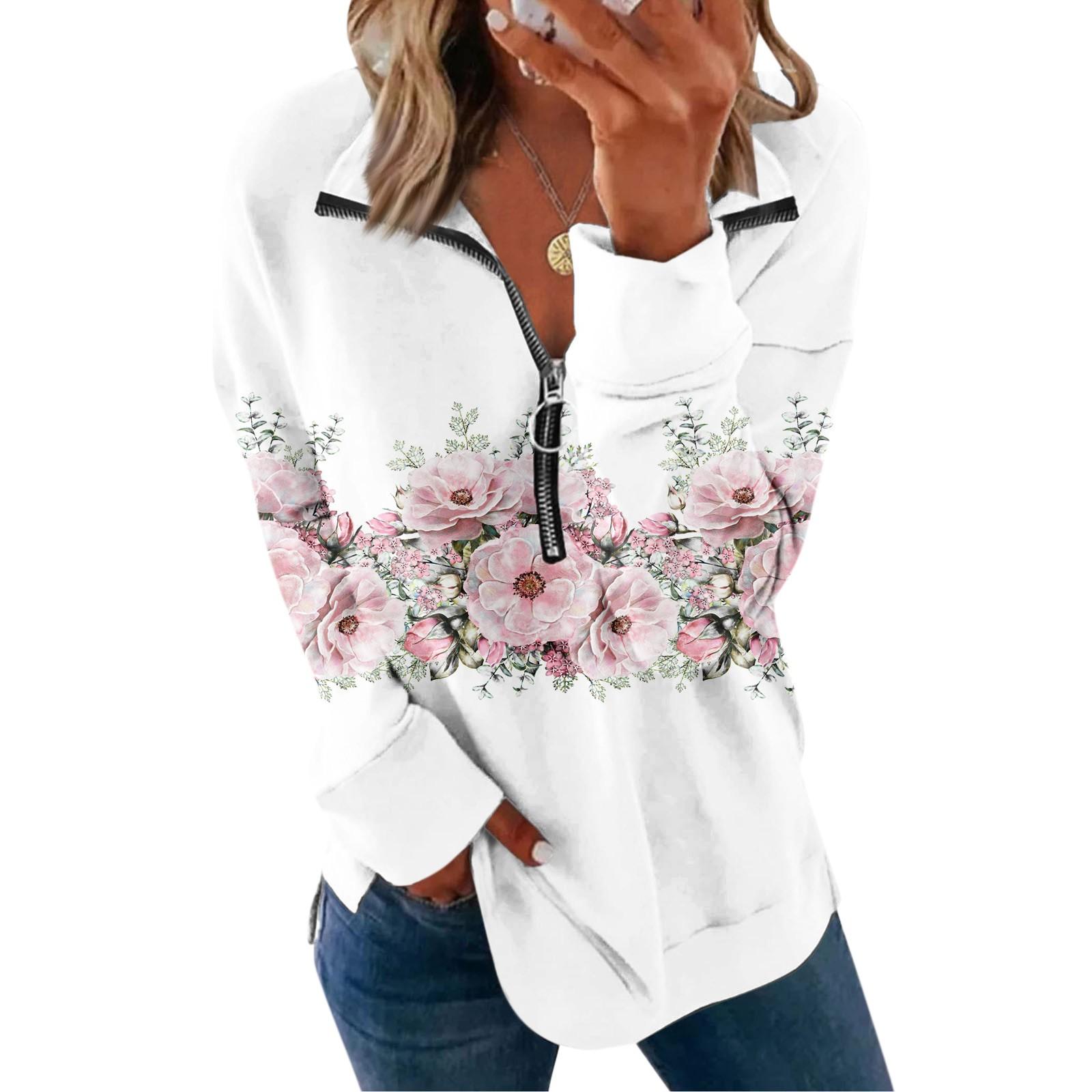 Рубашки на молнии с длинным рукавом для женщин, футболки с ретро-принтом, блузки, повседневные топы, пуловеры M белый