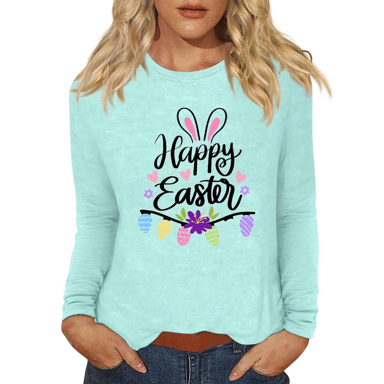 Рубашки с длинным рукавом для женщин Пасхальный карнавал Графический принт Футболки Блузки Повседневные базовые топы Пуловеры XXL