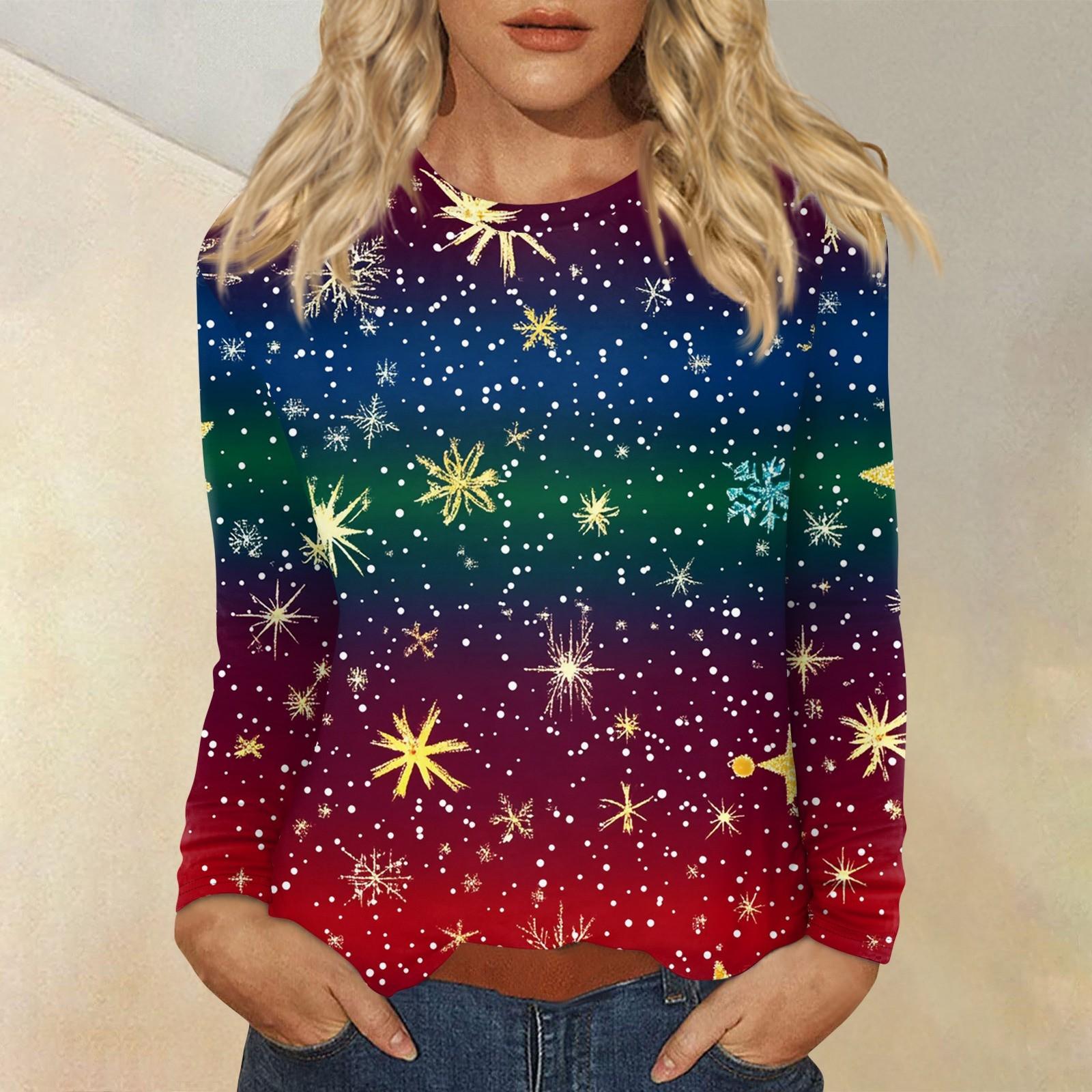 Рубашки с длинным рукавом для женщин, милые футболки с принтом на Рождество, блузки, повседневные топы больших размеров, пуловеры M винный