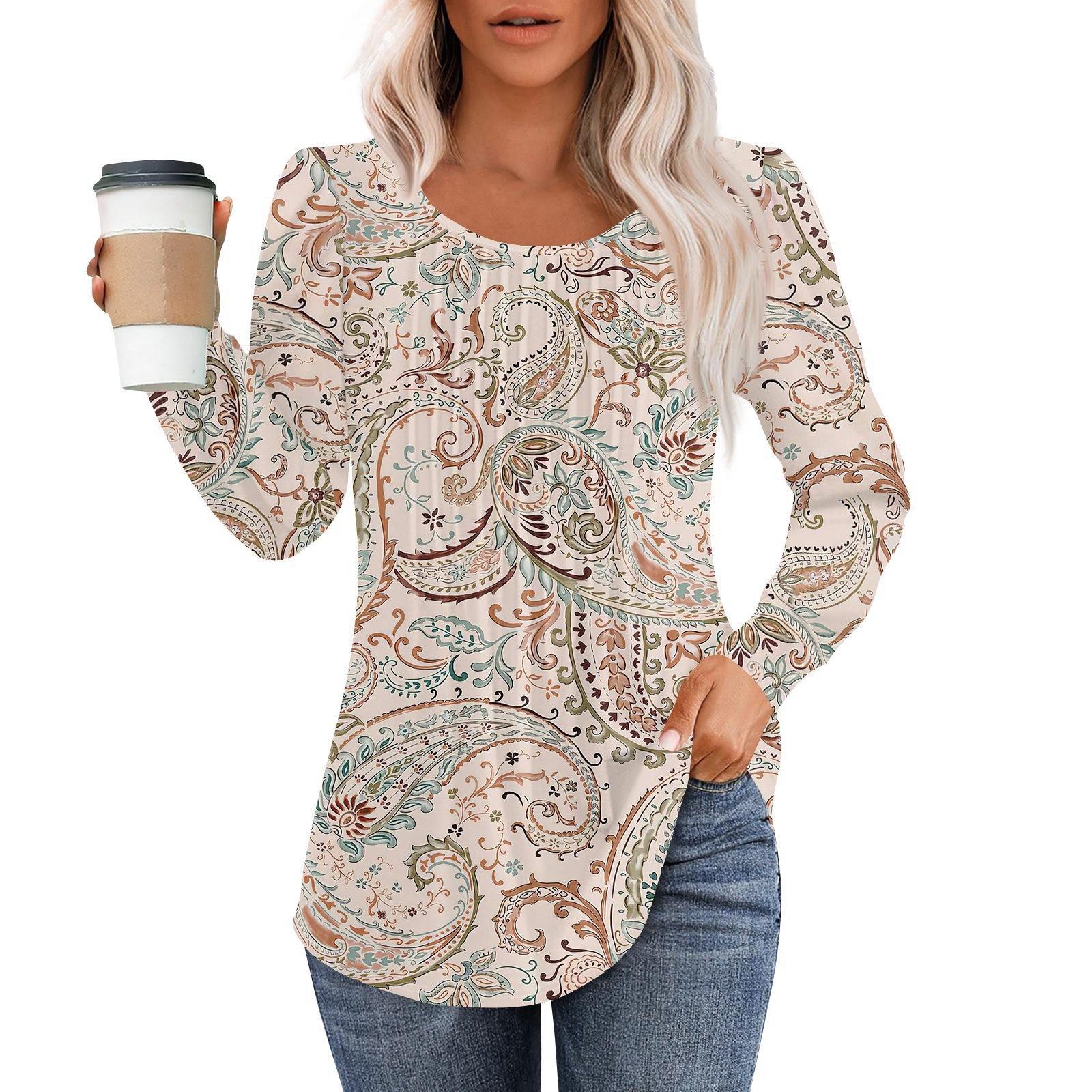 Рубашки с длинным рукавом для женщин, топы, нарядные повседневные блузки, плиссированные топы-туники с круглым вырезом XL хаки