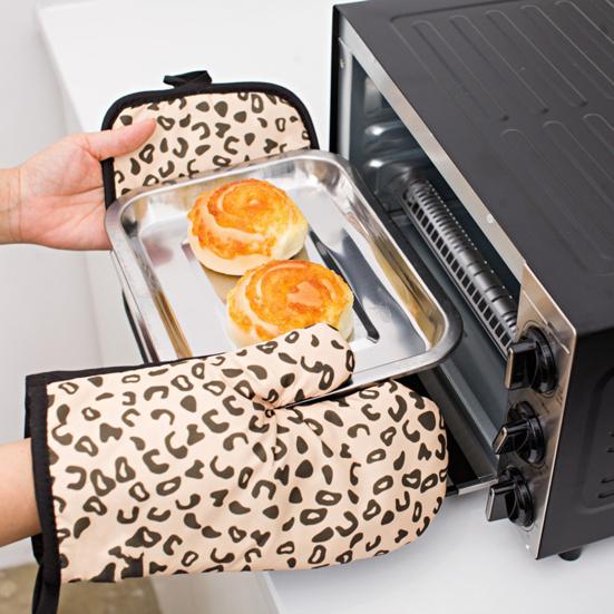 Рукавицы с леопардовым принтом, устойчивые к микроволновой печи, перчатки, утепленный комплект для нагрева, кухонная выпечка