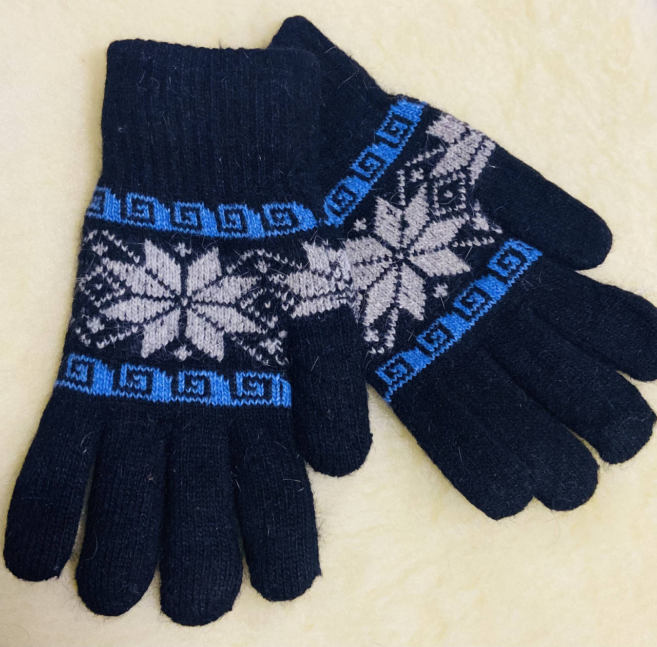 Рукавиці з овечої шерсті "Сніжинка" , чорного кольору, Черный