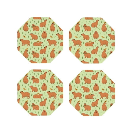 Leather Coasters with Heat-resistant for Drinks Capybaras Grass -标题2 Octagon