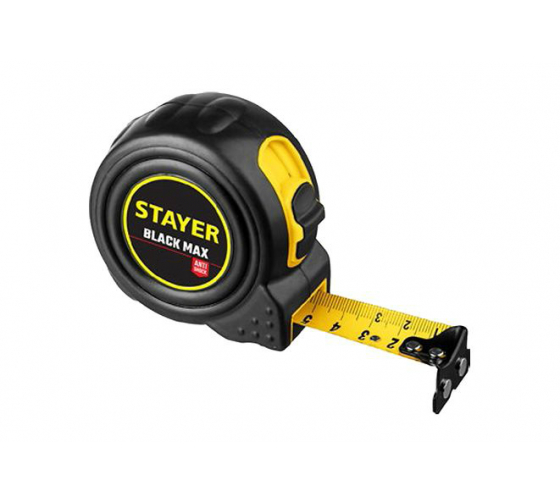 Рулетка 5 м x 2.5 см, прорезиненный корпус, магнитная, STAYER BlackMax (3410-05-25_z02), BlackMax