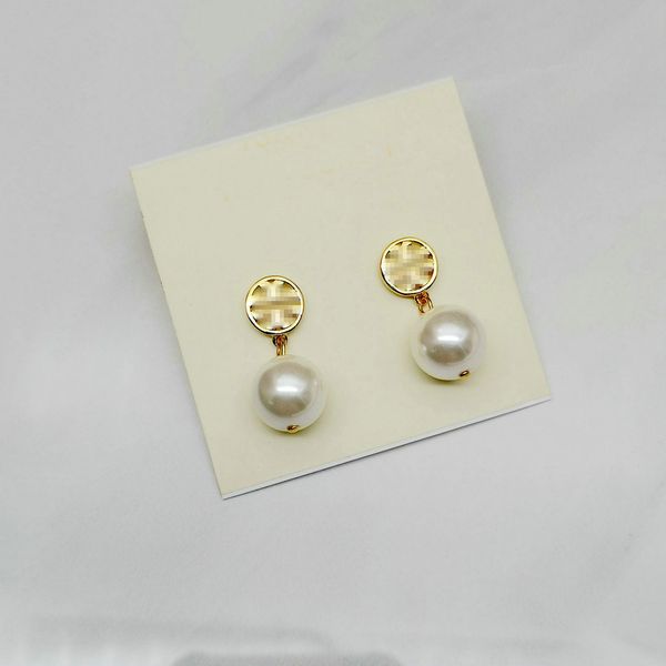 real gold plated 3colors pearl stud dorp charm drop earrings popular brand letter earrings, Golden