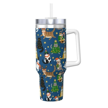 Uemuo Different Cats Christmas Print 40oz Ice Bully With Handle And Straw Stainless Steel Vacuum Insulated Cup And 2 In 1 Straw Lid Insulated Travel Tumbler