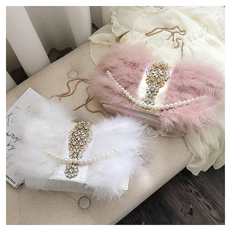 Квадратная сумка из страусиного меха, украшение с жемчугом, ручка с украшением из жемчуга, сумки на плечо с бриллиантами для женщин