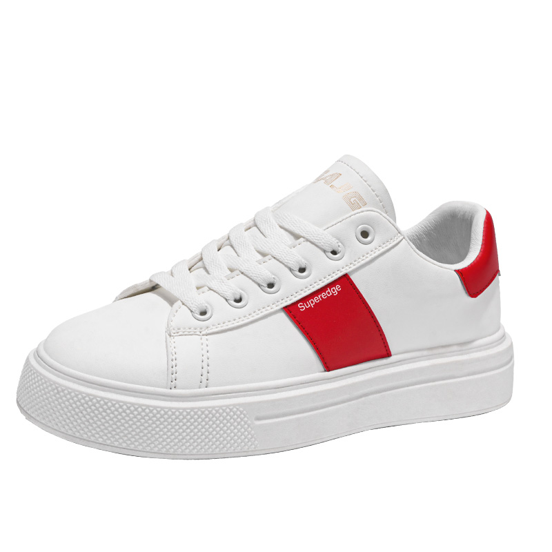 SUPEREDGE Скейтерские кросcовки мужские с противоскользящим и износостойким покрытием низкие белые с красным, цвет White Red