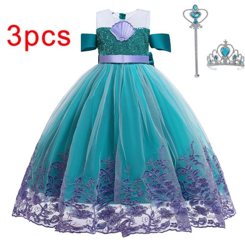 Русалочка Ариэль Принцесса Костюмы Молодых Девочек Фиолетовое Платье Дети Косплей Карнавальное Платье День Рождения Платья Пачки Летняя Новая Одежда 120(5Y)