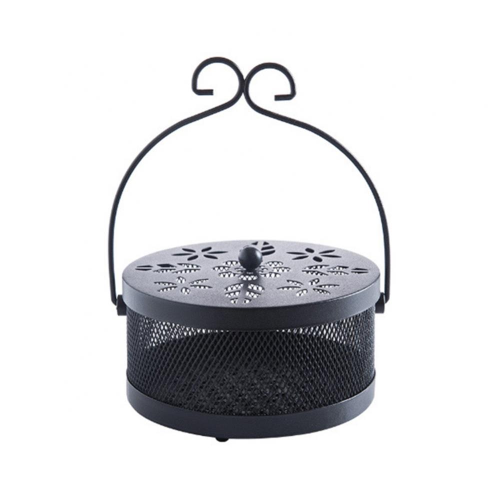 Ручка Огнеупорный Полый Металлический Железный Держатель для Спиралей от Комаров Ретро Подставка-Контейнер для Благовоний от Комаров с Ручкой чёрный