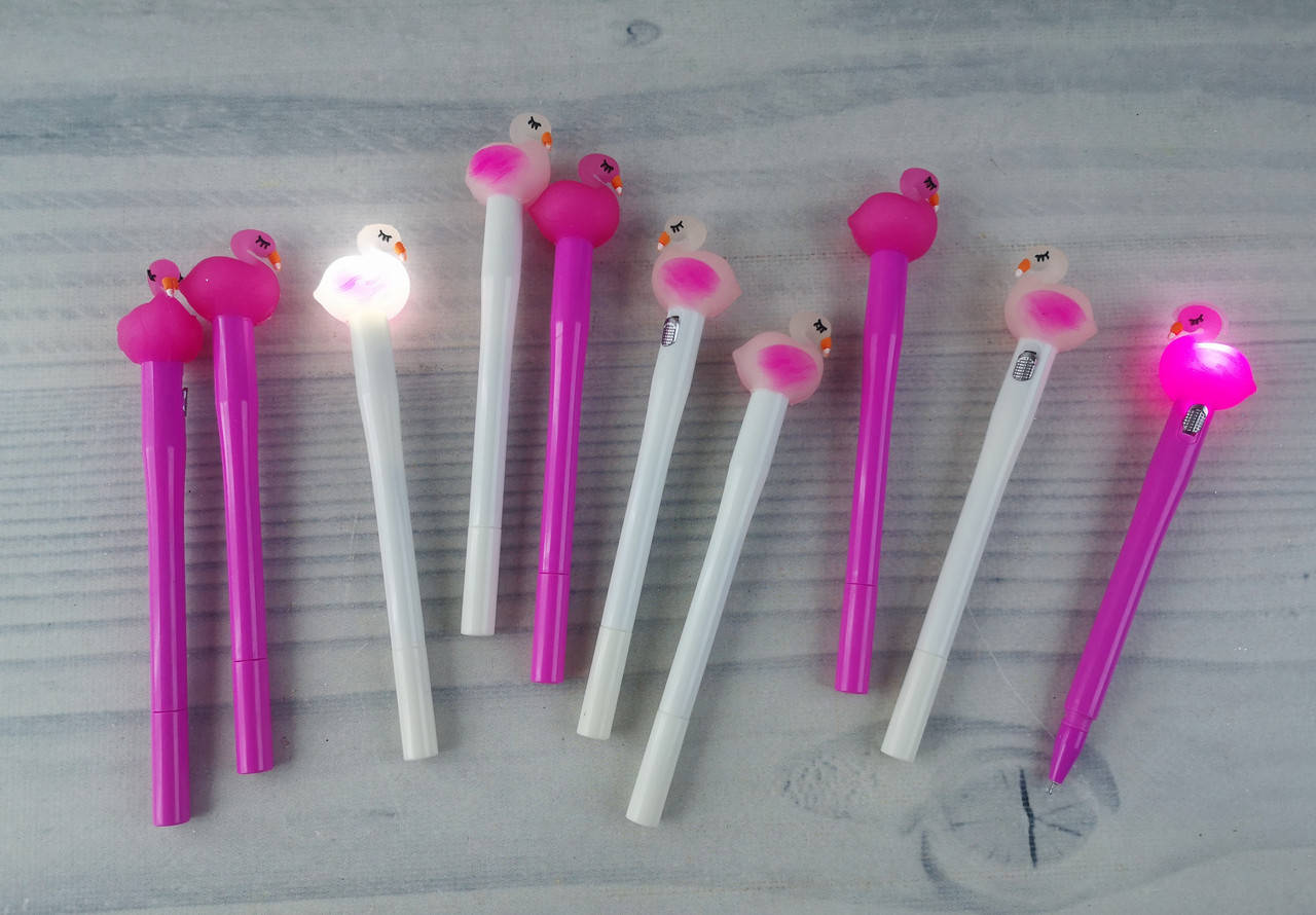 Прикольная гелевая ручка с насадкой в виде фламинго с подсветкой.