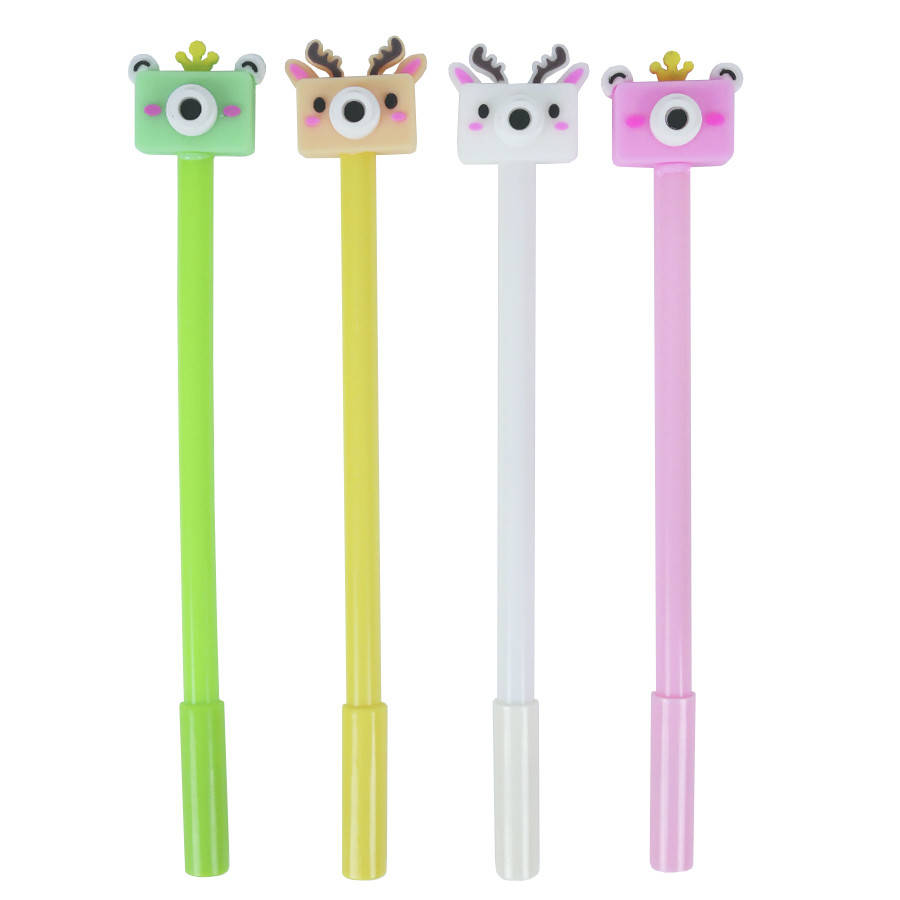 Кулькова ручка на гелевою основі з гумовою насадкою у вигляді фотокамери. Товщина лінії 0,38 мм. Колір чорнил синій. Бажаний колір корпусу вказуйте в коментарях. Ціна вказана за 1 ручку.