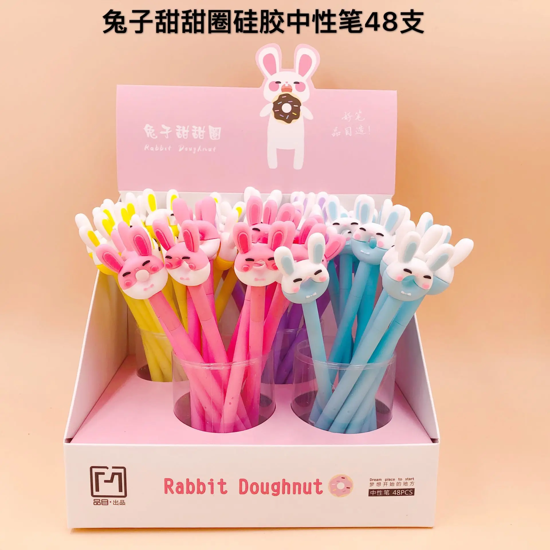 Ручка для письма, 48 шт., Черная гелевая ручка, мультяшный кролик, Пончик, для письма, симпатичные канцелярские принадлежности Kawaii мм, офисные ...