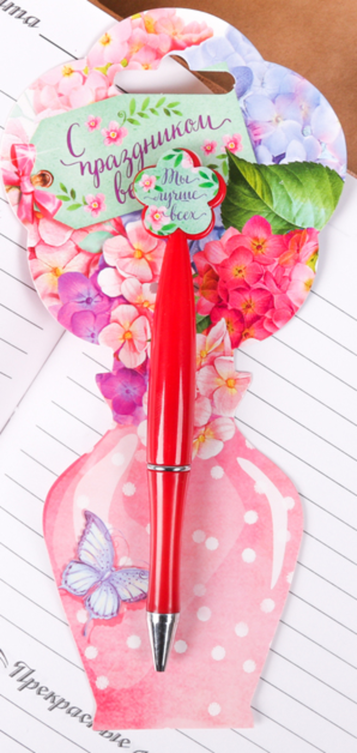 Ручка подарочная шариковая синяя 1,0мм С праздником весны! пластик.корпус на открытке SM 2187599