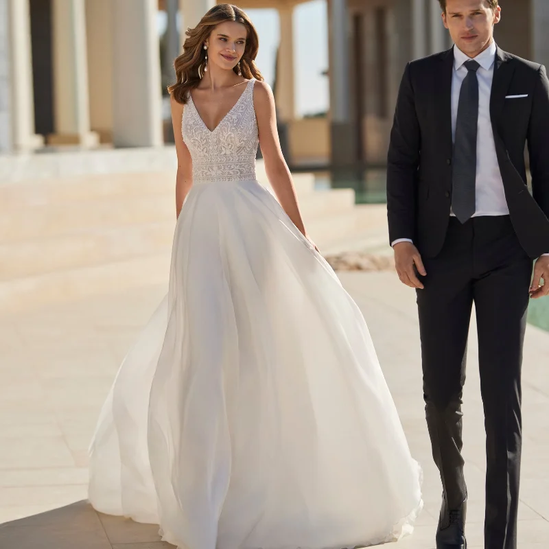 Кружевное свадебное платье в стиле бохо без рукавов с V-образным вырезом трапециевидные платья для невесты Robe De Mariee кружевное платье с V-образным вырезом на спине