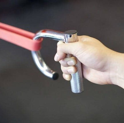 Аксессуар для эспандер-петель представляет собой рукоять (захват) с крюком и изготовлен из хромированной металлической трубы. На рабочую часть ручки нанесены насечки, поэтому она не скользит в руках. Крюк изогнут таким образом, чтобы резиновые петли (ленты) не соскользнули с него даже при выполнении очень активных движений. Все открытые части трубы закрыты заглушками.