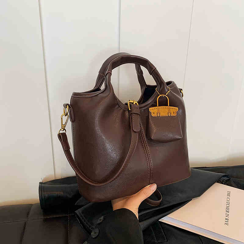 Ручная модная сумка-ведро большой вместимости для женщин, винтажная универсальная сумка через плечо, осень-зима, новая сумка через плечо для поездок на работу