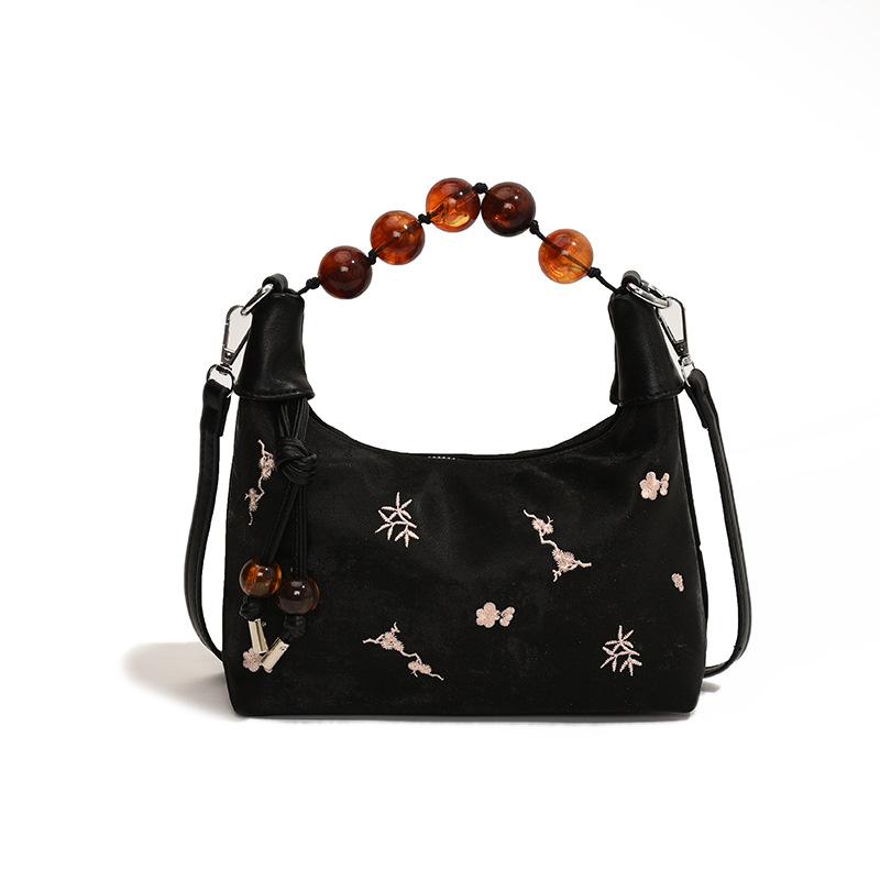 Ручная новая китайская сумка женская модная вышитая сумка для пельменей нишевая простая и универсальная сумка через плечо 22*8*20 чёрный