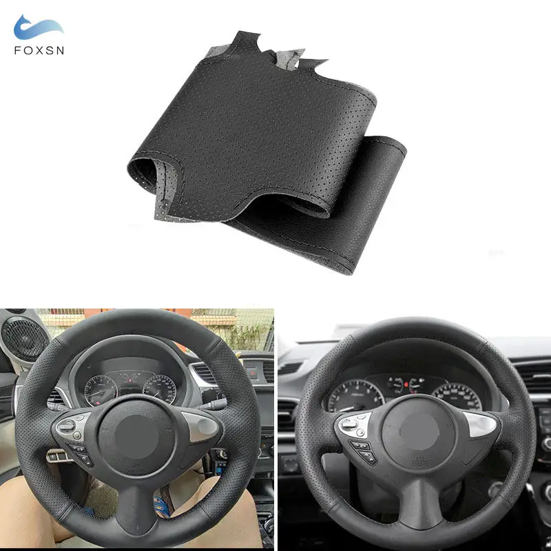 Ручная оплетка, черная перфорированная кожа, фотоотделка для Nissan Maxima 2009-2014 Juke 370Z 2011-2017 Sentra SV