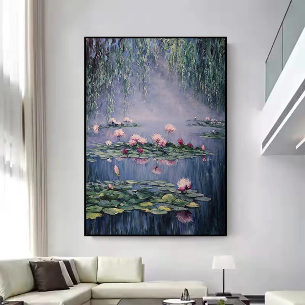 Ручная роспись маслом пейзаж натюрморт Лотос на Бризе декоративная картина маслом в американском стиле подвесная картина