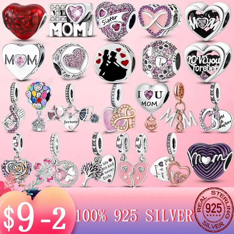 Лидер продаж 2022, бижутерия из серебра 925 пробы, бесконечность, любовь, мама, сердце к сердцу, подвеска-Шарм, подходит для оригинального браслета из серебра 925 пробы, ювелирные изделия