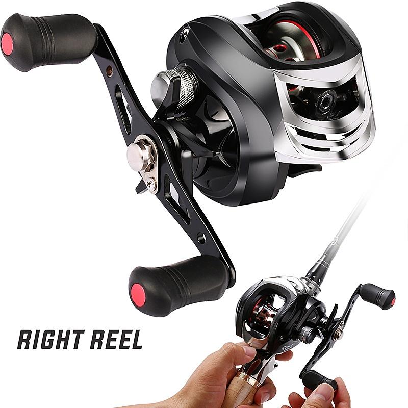 Рыболовная катушка 18BB Baitcasting 7,2:1 Двойная тормозная система Ультра плавная левая/правая кастинговая катушка Right чёрный