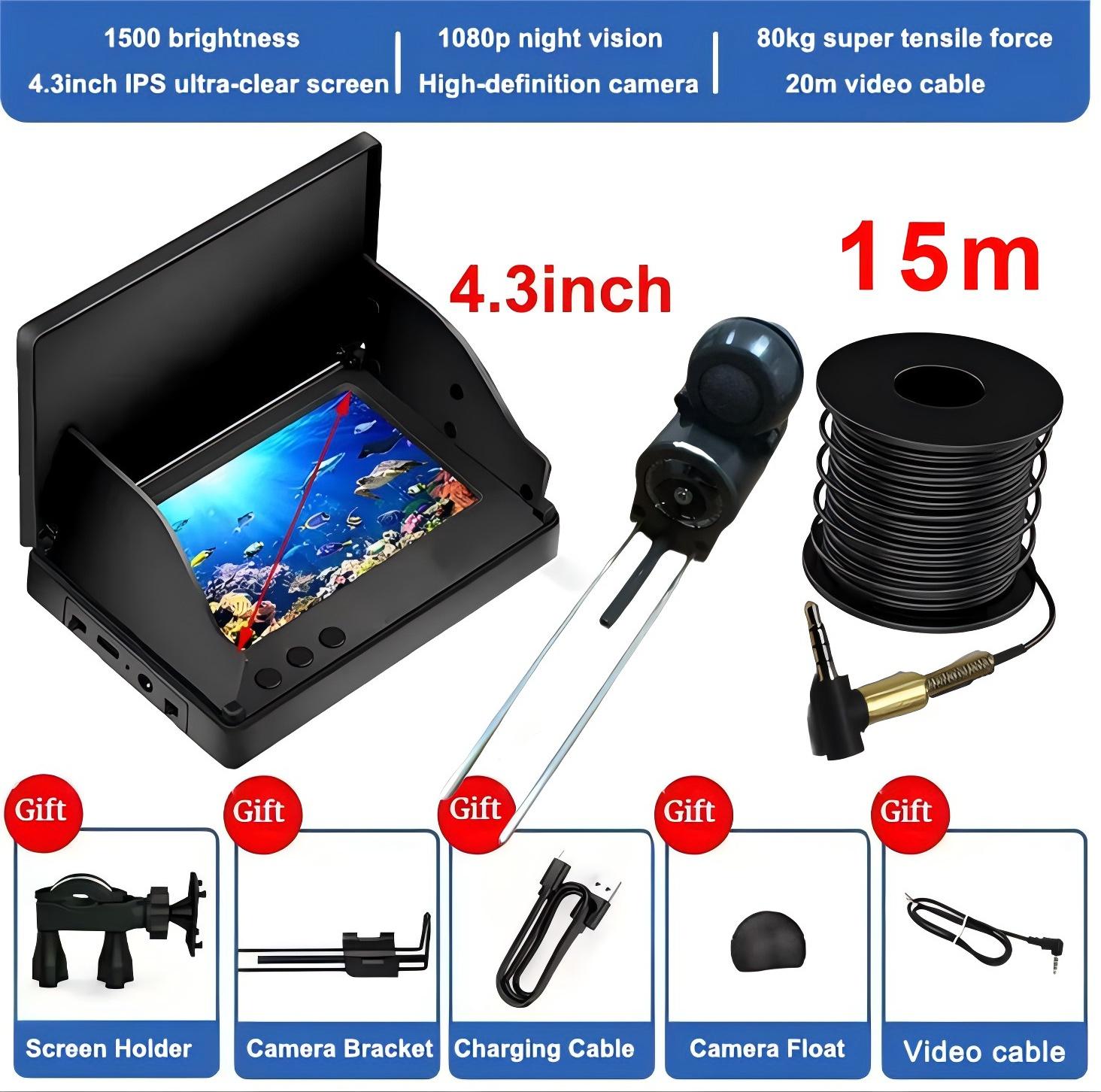 Рыболокатор с ЖК-дисплеем 4,3 дюйма, подводная камера для рыбалки с углом обзора 220°, водонепроницаемая IPS 1080P, 9 часов автономной работы, ночное видение 15/20/30 м