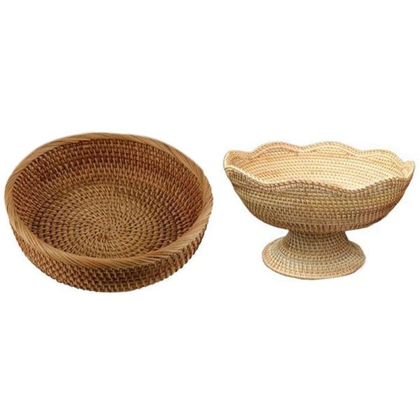 storage baskets au -2 pcs rattan fruit basket snack bread round woven basket, a & b