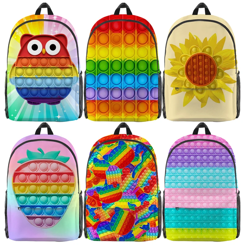 Рюкзаки для мальчиков и девочек с 3D принтом POP IT, Детские милые Мультяшные сумки для книг, школьные сумки для студентов, женские сумки, Детски...