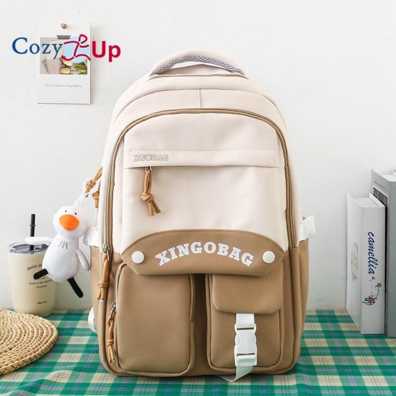 Рюкзак большой емкости контрастного цвета, нейлоновый повседневный рюкзак с принтом, школьная сумка для школьников младших классов 46x31x14cm бежевый