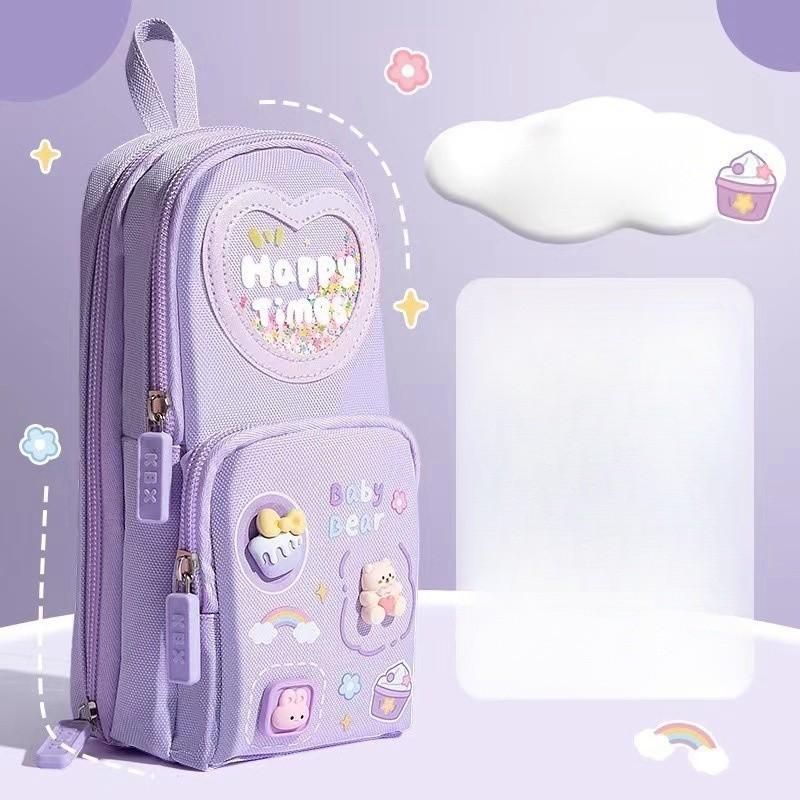 Рюкзак водонепроницаемый пенал для девочек, учеников начальной школы, детей, большой емкости, эстетическая ценность, простые и милые канцелярские принадлежности с героями мультфильмов для девочек фиолетовый