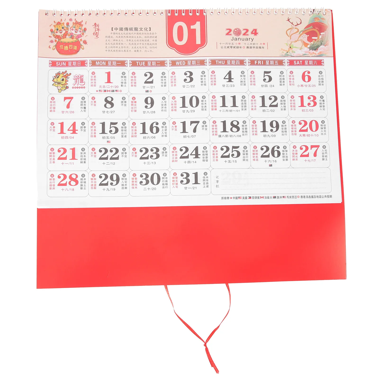2024 Dragon Year Calendar Wall Scroll New Year Decor Hanging Traditional Monthly Planner Clear Print Design Office Supply Garden
