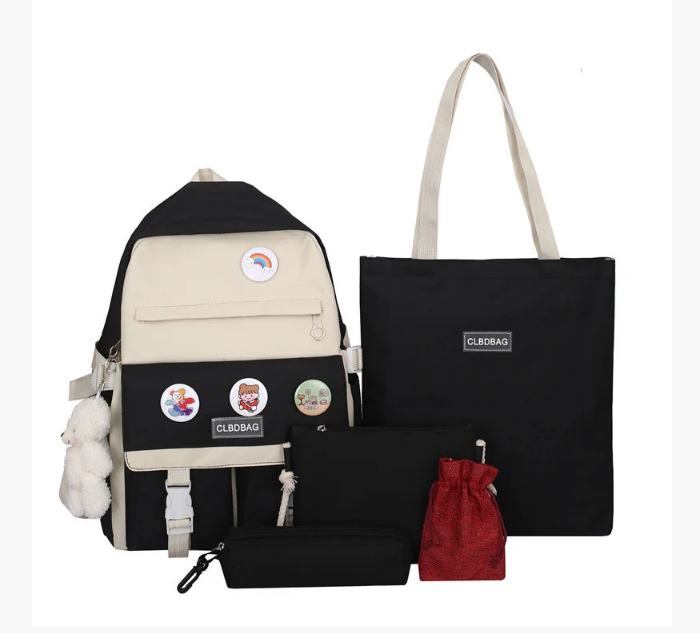 Рюкзак женский + сумки + пенал Комплект черный с бежевым 284G