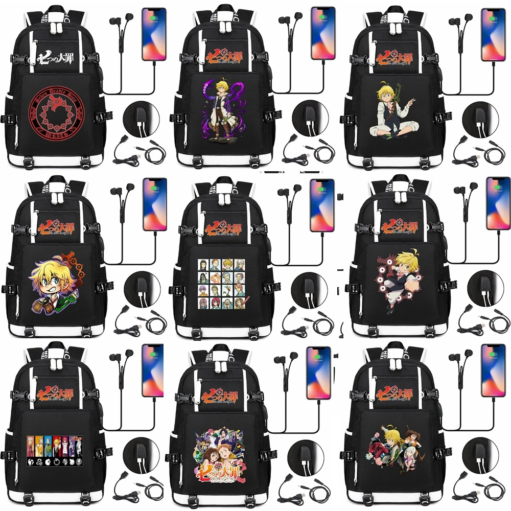 Рюкзак мелиодас с аниме «Семь смертных грехов», черные дорожные сумки на плечо, школьный портфель для студентов и подростков, подарок