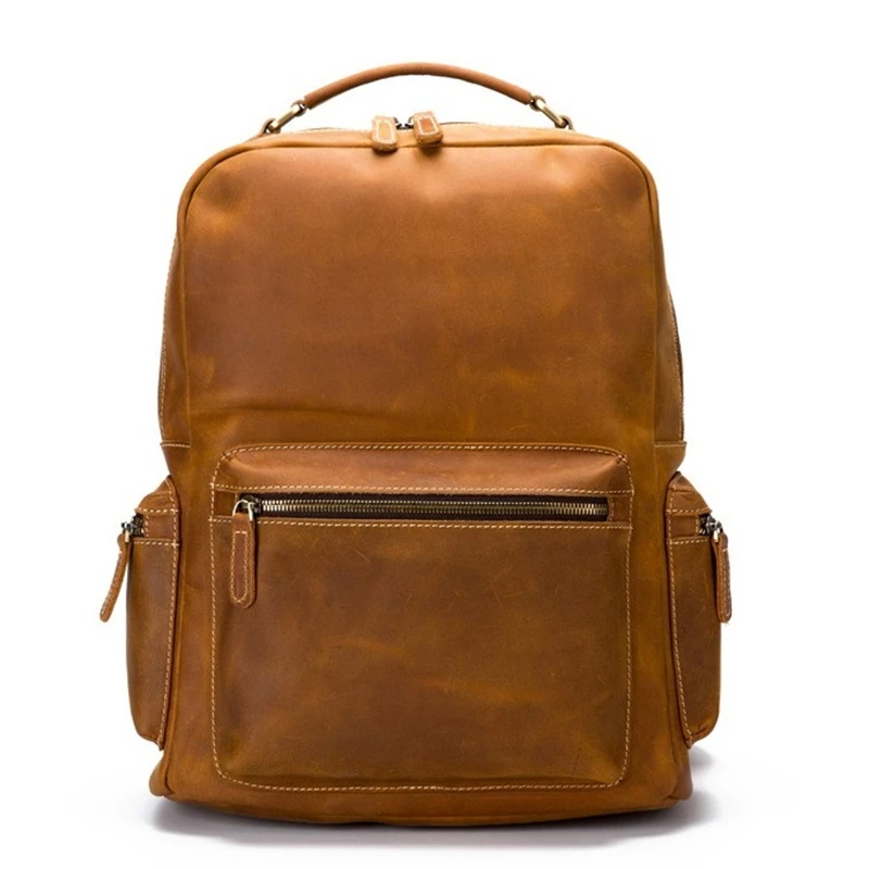 Рюкзак мужской из натуральной кожи, Большой Классический дорожный ранец в стиле ретро, сумка для ноутбука и компьютера